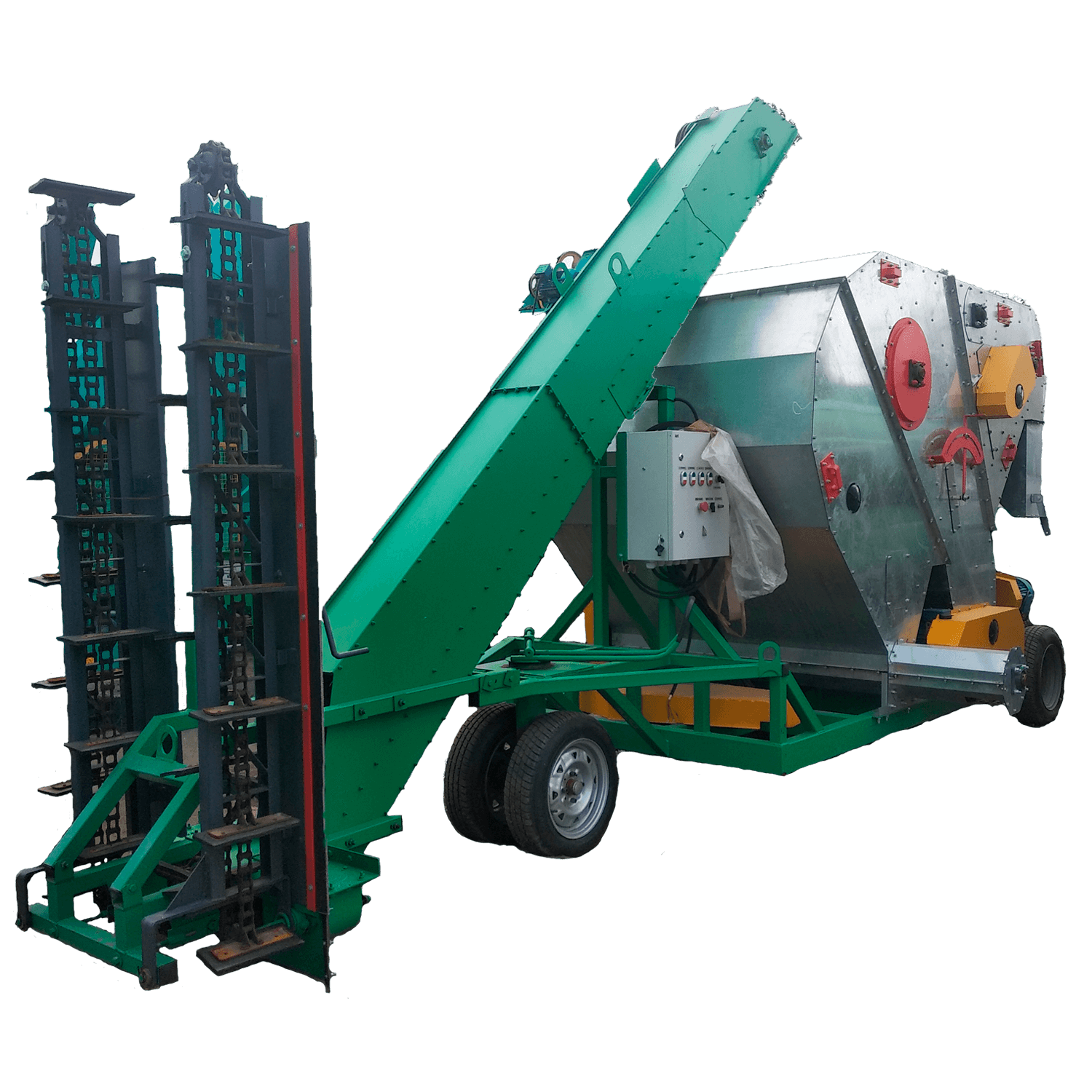 Уникальный комплекс зерноочистки МЗК-70 предназначен для предварительной очистки от сорных примесей поступающего с поля зернового вороха колосовых, крупяных, зернобобовых культур, кукурузы, сорго и подсолнечника и рассчитан для работы во всех зонах страны. Основой послужила Машина МПО-50. Данный зерномет выполняет сразу две задачи: погрузка и предварительная очистка. Идеально подходит для предварительной очистки зерна перед сушкой.
