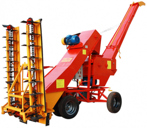 На раме с трехточечной колесной ходовой базой разработчики установили механизм самопередвижения, загрузочный скребковый транспортер с двумя Т-образными питателями, триммер с поворотной рамой и электроприводы рабочих механизмов.